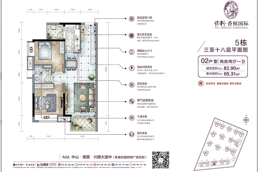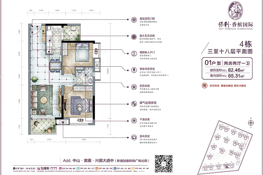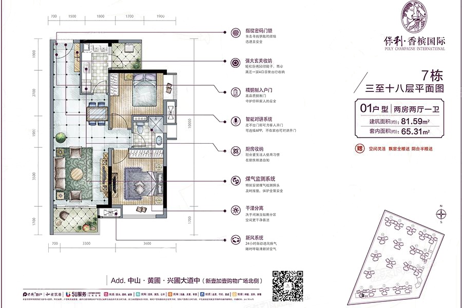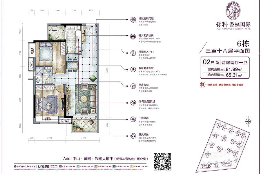 保利香槟国际2室2厅1厨1卫 65.97万起