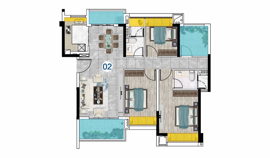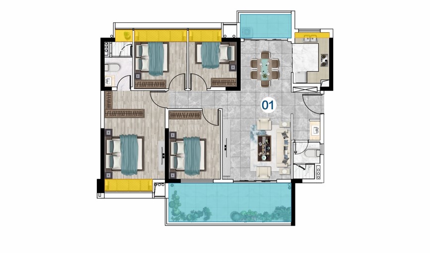 约7米长南向景观阳台 拥揽一线岐江开阔视野 南北对流通风采光俱佳 启幕理想江景幸福生活