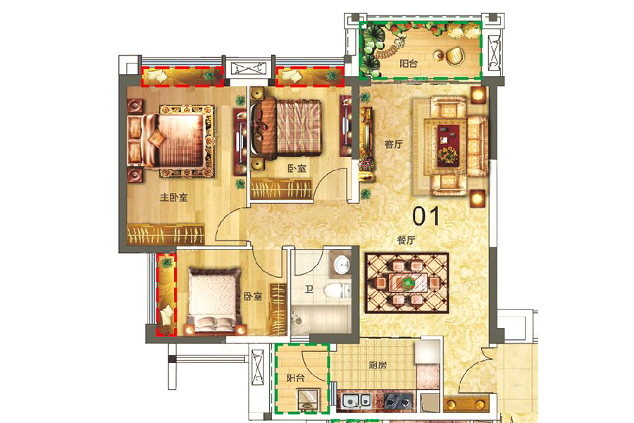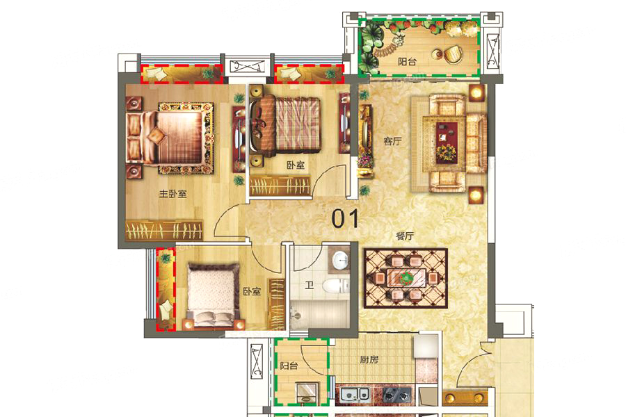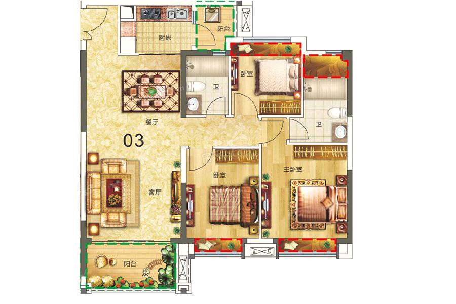 福晟钱隆华府3室2厅1厨2卫 167.82万起
