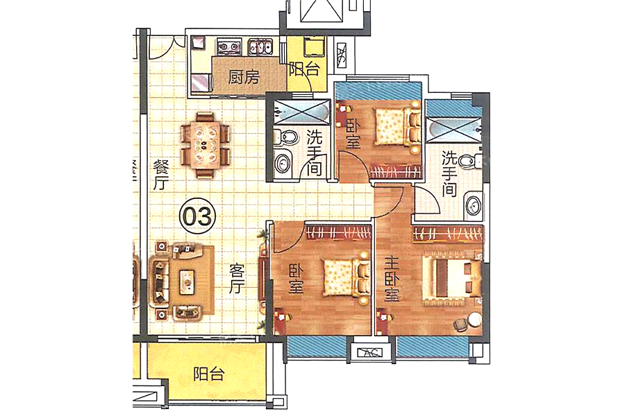 福晟钱隆华府3室2厅1厨2卫 156.8万起