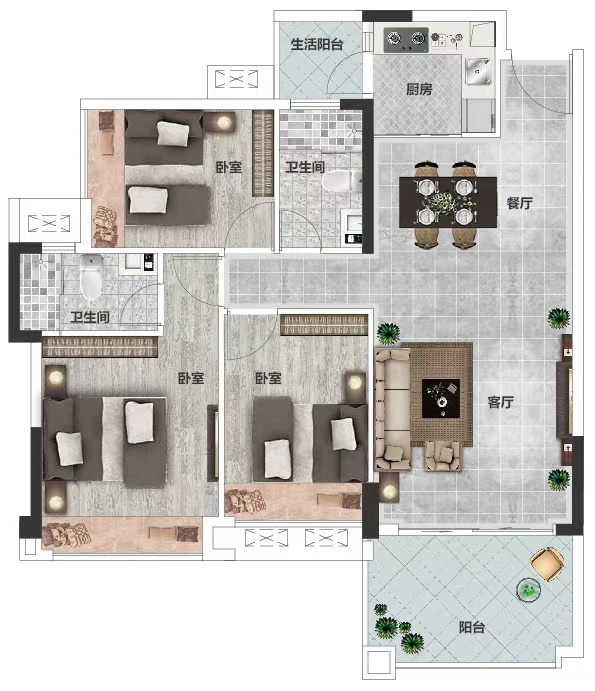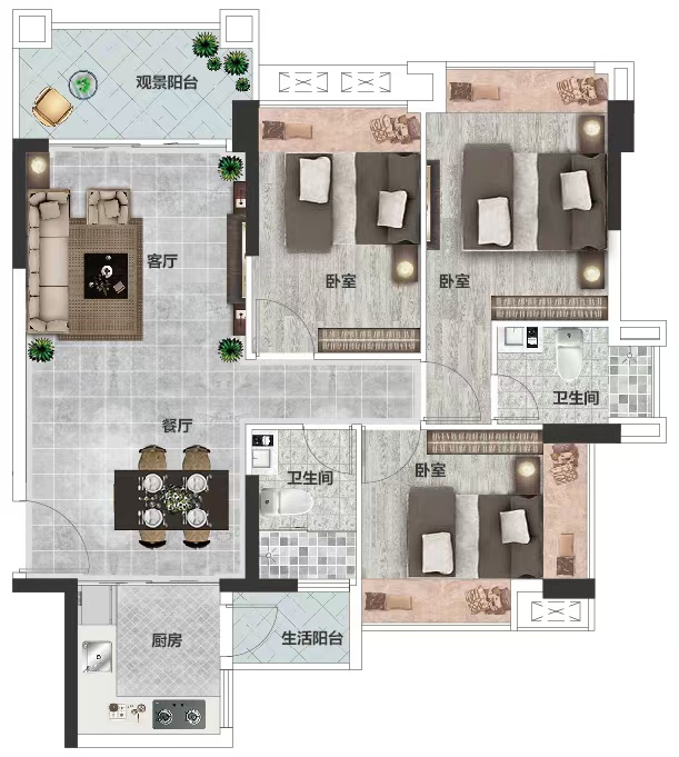 • 户型名称:3房2厅2卫