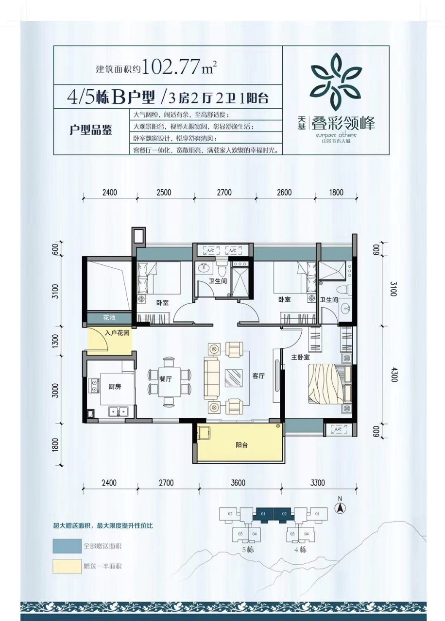 6、<低密度⾼绿化社区> 25000 ㎡热带休闲主题园林,107m 超⻓楼距,⽣活舒适度最⼤化,推窗即⼭景,随时享受新鲜空⽓。 7、<运动⽣态社区> 650㎡双拼碧⽔泳池,同时配备⽻⽑球场、篮球场,983⽶健身夜跑跑道,随时畅享休闲娱 乐。