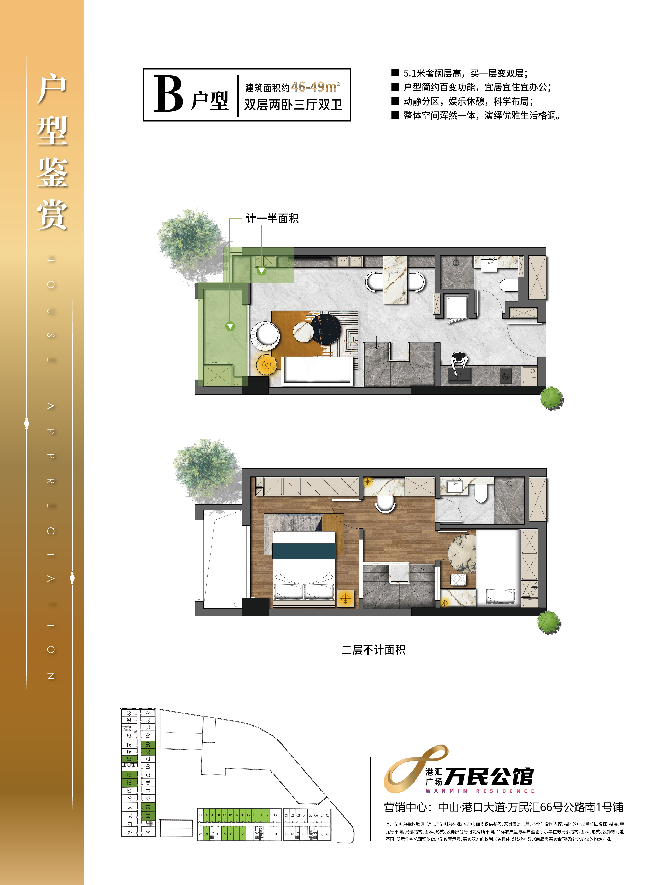 專案處於中山核心城區北部港口鎮,體量達12.3萬m²,涵蓋7.5萬m²港口鎮最繁華的萬民匯購物中心,一個新概念的城市綜合體——集衣、食、住、行、體驗、娛樂於一體的“生活方式中心”。提供一站式託管服務,安全省心,輕鬆實現自由與財富的雙重夢想。中山北部唯一5.1米層高全能商住Loft公寓,靈動多維擴展空間,買一層得兩層。