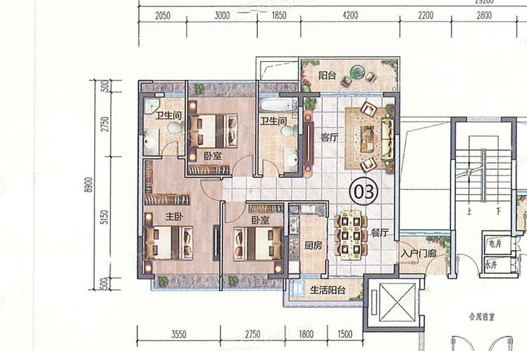 • 户型名称:3房2厅2卫1厨