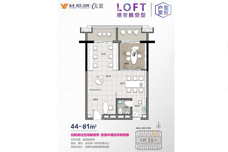 越秀星汇品峰天寰项目,用地面积42237.90平方米,建筑面积158548平方米,15万㎡智能综合体,打造中山东区CBD。位于中山市东区博爱路,毗邻深中通道、京珠高速出入口,无缝衔接广佛深港澳,较短车程直达深圳、广州、珠海等。湾区核心,地理位置优越,交通便利。 46-48㎡双钥匙设计,5.1米层高LOFT公寓,买一层用两层。带装修设计,拎包入住,满足舒适居家需求。 44-81㎡灵动SOHO,多功能布局,户型多变、自由组合,办公居家一体化;功能齐全,空间实用,宜居宜商宜投资。 6米层高一线博爱路临街商铺,独具高端餐饮,投资、自营皆可,至臻品质享双倍空间。34载国企实力,为投资保驾护航。