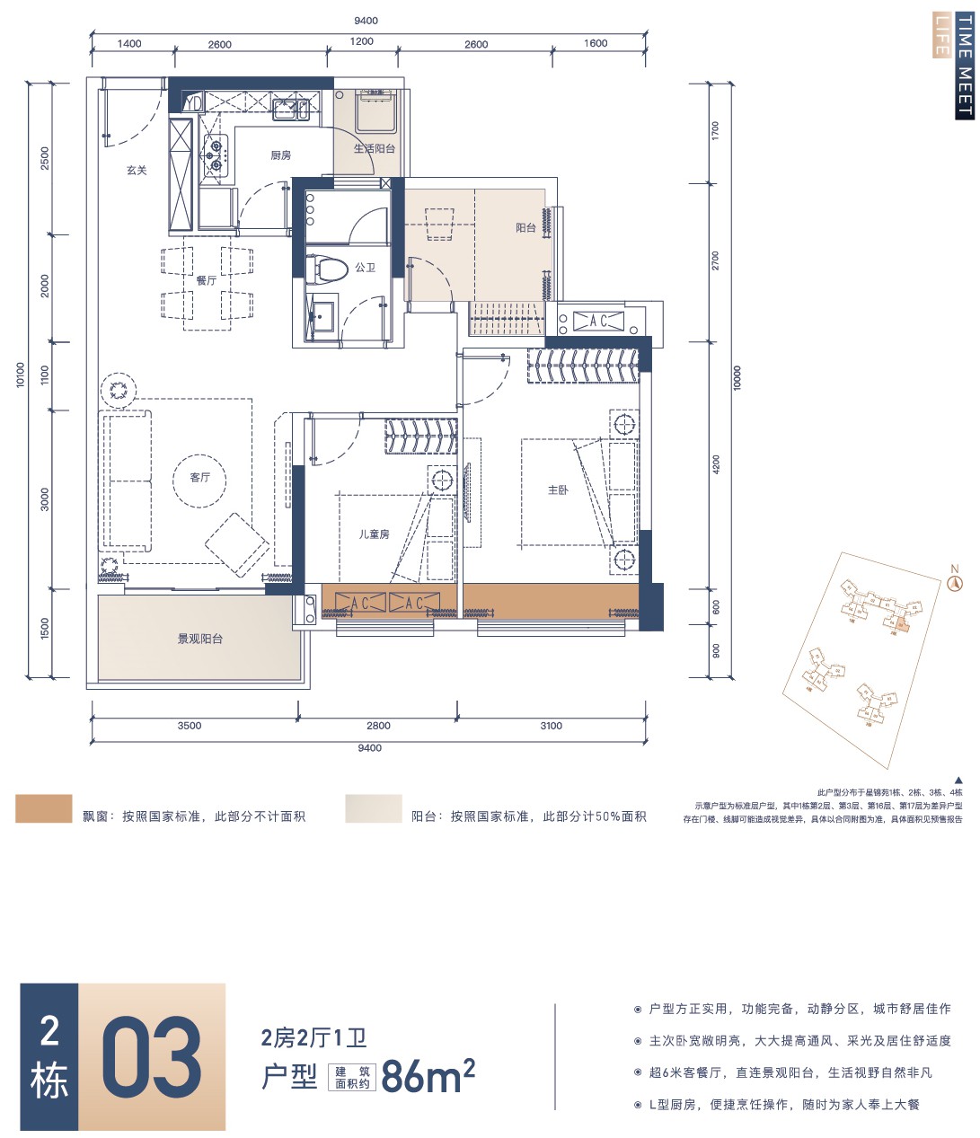 户型方正实用,功能完备,动静分区,城市舒居佳作 主次卧宽敞明亮,大大提高通风,采光及居住舒适度 超6米客餐厅,直连景观阳台,生活视野自然非凡 L型厨房,便捷烹饪操作,随时为家人奉上大餐